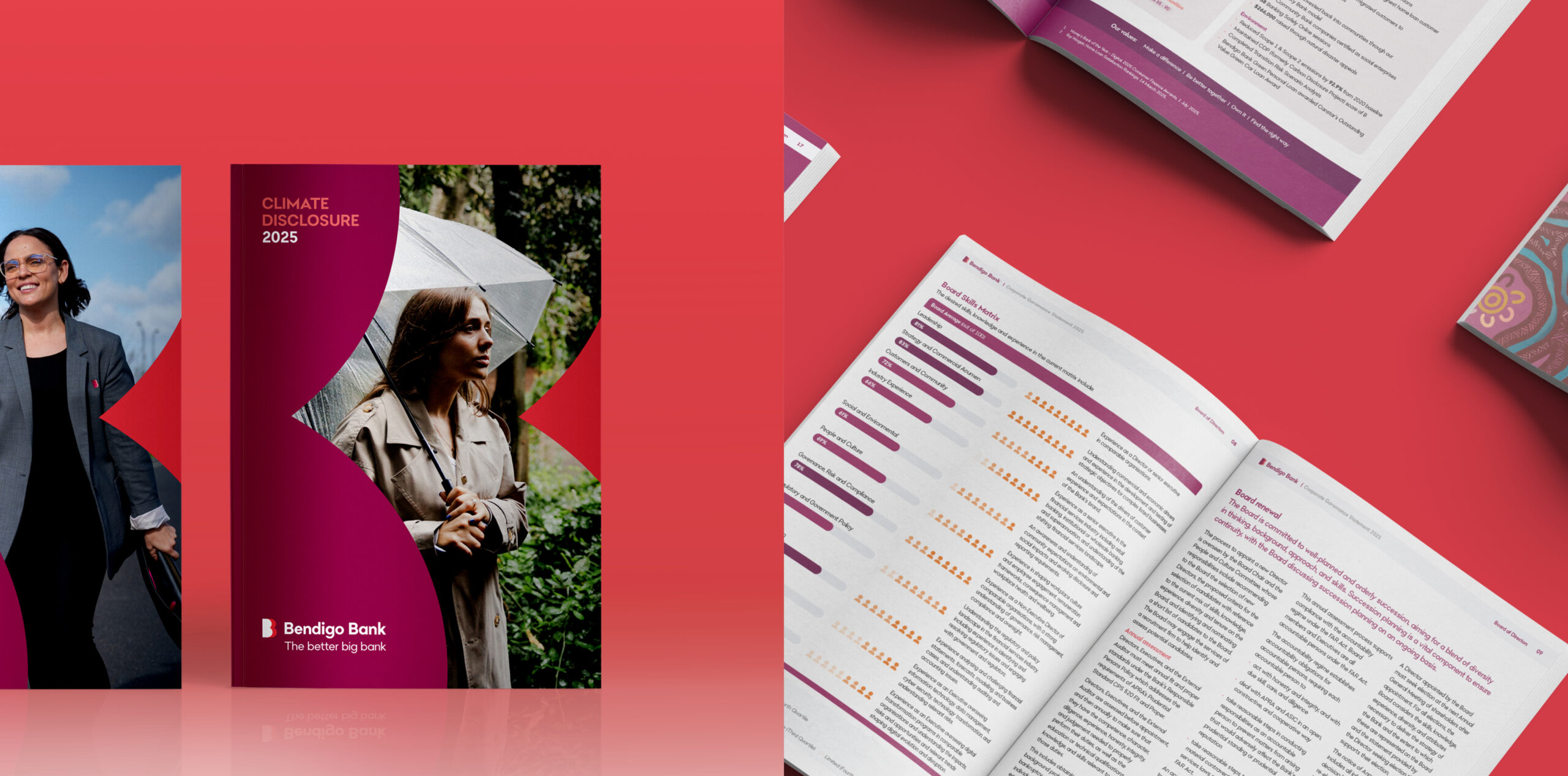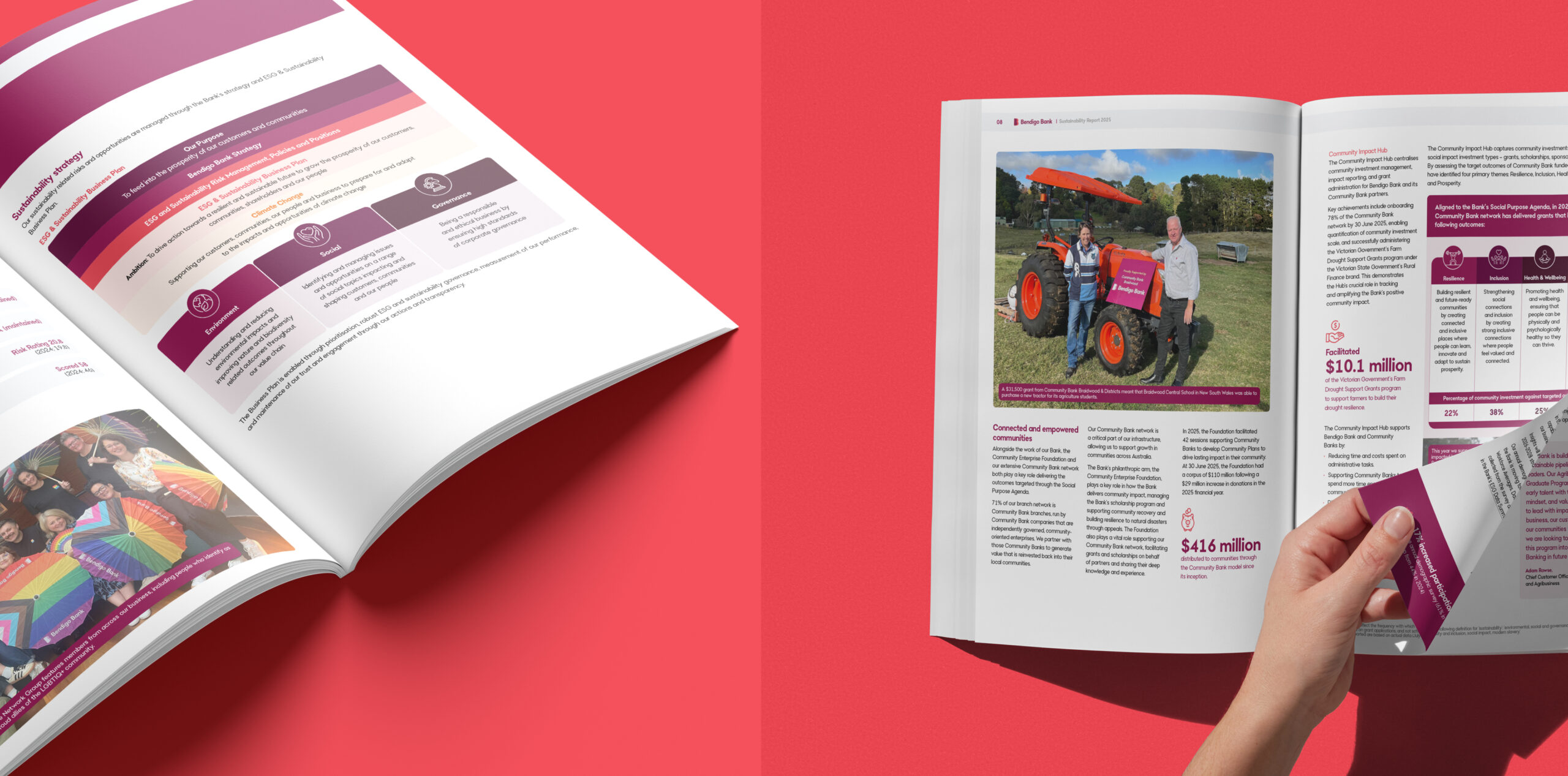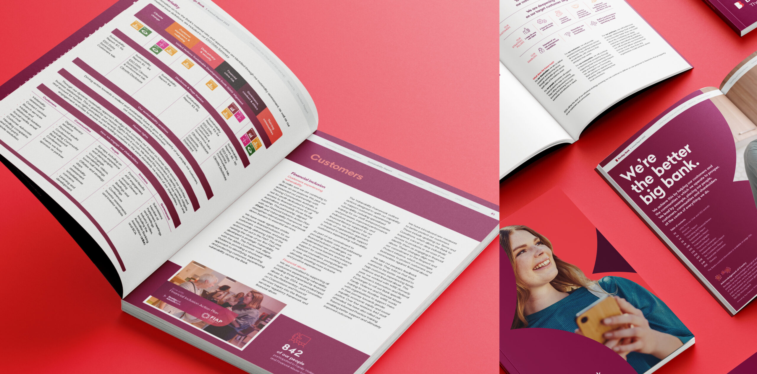 For the 2025 reporting suite, Bendigo Bank engaged us to evolve the design direction established in 2024, reflecting the organisation’s refreshed brand and strategic direction. The suite adopts a confident, contemporary visual language that communicates trust, stability, and growth.