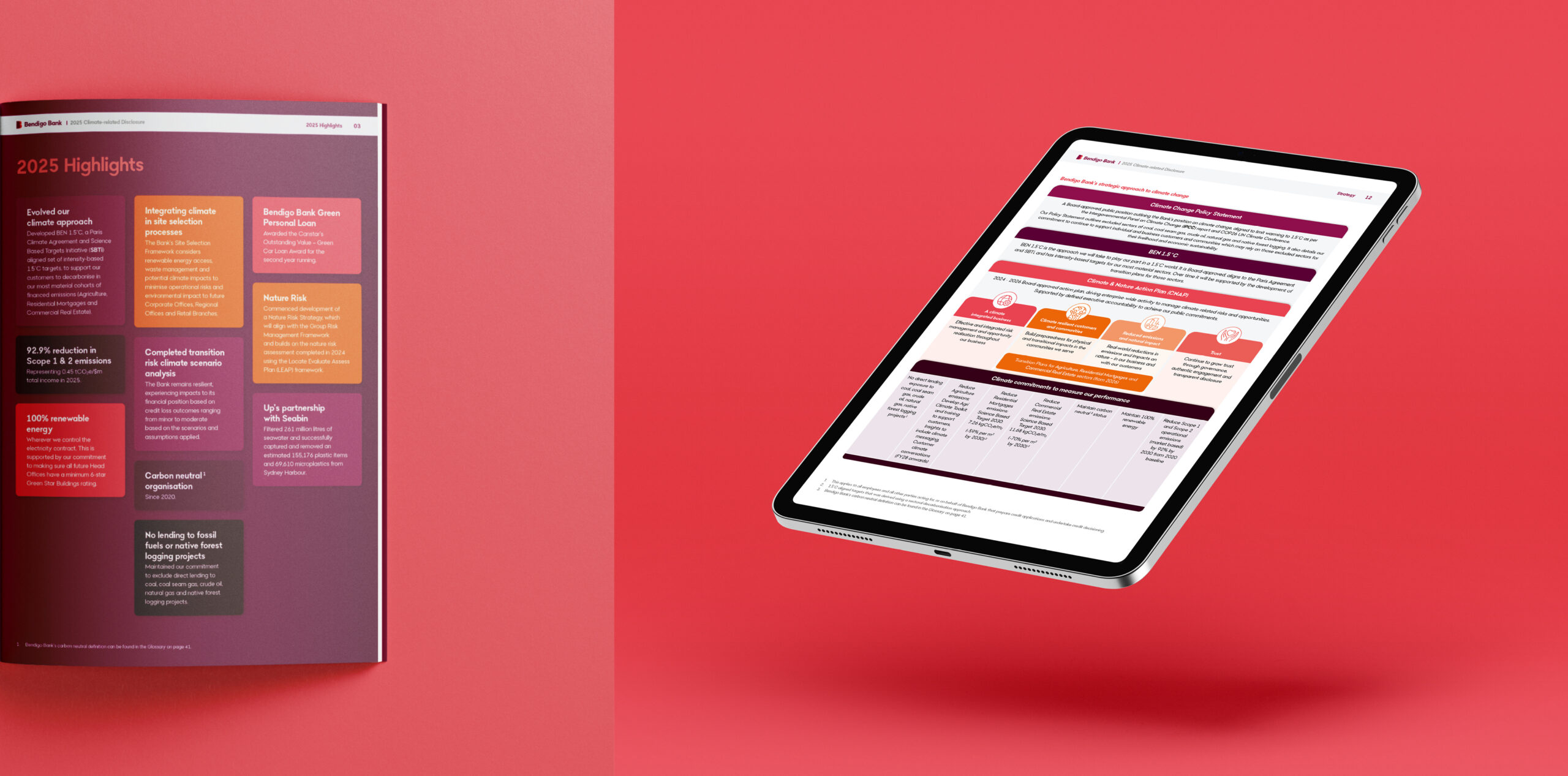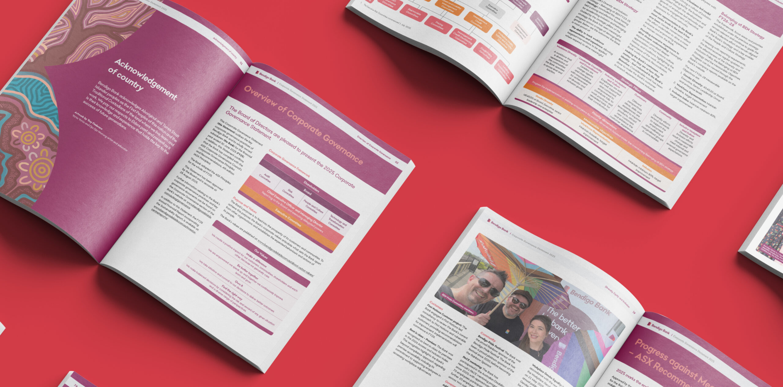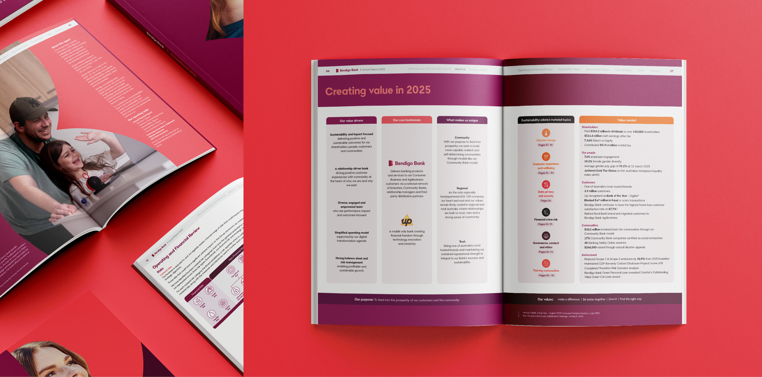 For the 2025 reporting suite, Bendigo Bank engaged us to evolve the design direction established in 2024, reflecting the organisation’s refreshed brand and strategic direction. The suite adopts a confident, contemporary visual language that communicates trust, stability, and growth.